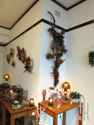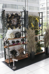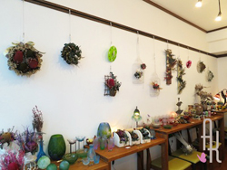 実際のショップに飾るアレンジメントの制作もおこないます。特に昨年の9月に「ナチュラルセラピー千の香」というアロマや整体の施術とカフェ・物販を併設したお店をオープンさせた竹内さんは自店のディスプレイに取り組んでいます。