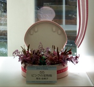 江口美貴さん主宰「プリザーブドフラワーコンテスト2010 in Osaka」が6月1日から30日までホテル阪急インターナショナルで開催されました。 |