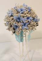 オーストラリアプリザーブフラワーならではのマテリアルの特徴を活かした、ブライダルブーケです。ツインボールにしたことで、上下のバランスのとりかたやカラーリングのコントロールなどについても工夫していきます。